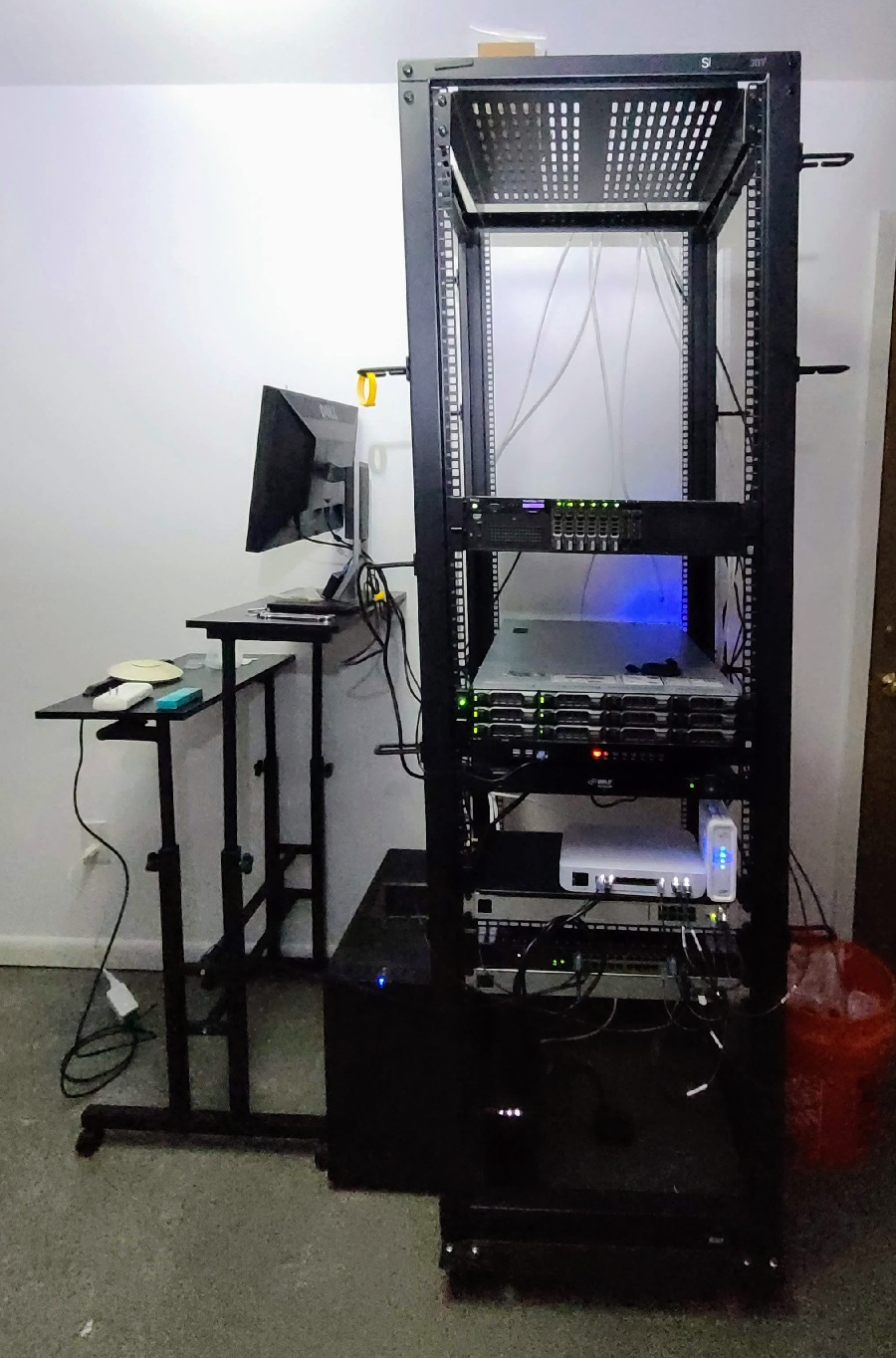 New rack for the homelab! In it, we've got a Dell R730, a Dell R730XD, a KVM switch, and networing gear. The servers are connected over a 32Gbps backplane via SFP+.